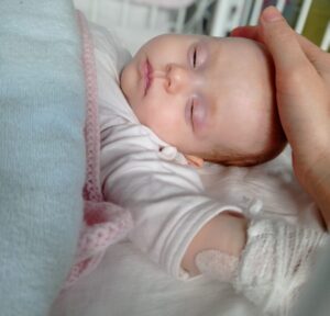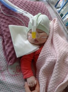 To był bardzo trudny okres. Rozwój Zosi zatrzymał się, przestała się uśmiechać, a nawet ruszać. Było niewyobrażalnie ciężko. Do tego doszła zerowa odporność i ciągłe infekcje. Zwykłe przeziębienie skończyło się zapaleniem płuc i pobytem na oddziale pulmonologicznym. Jej stan był tak poważny, że trafiła na intensywną terapię, gdzie miała wsparcie oddechu, cewniki i sondę.
